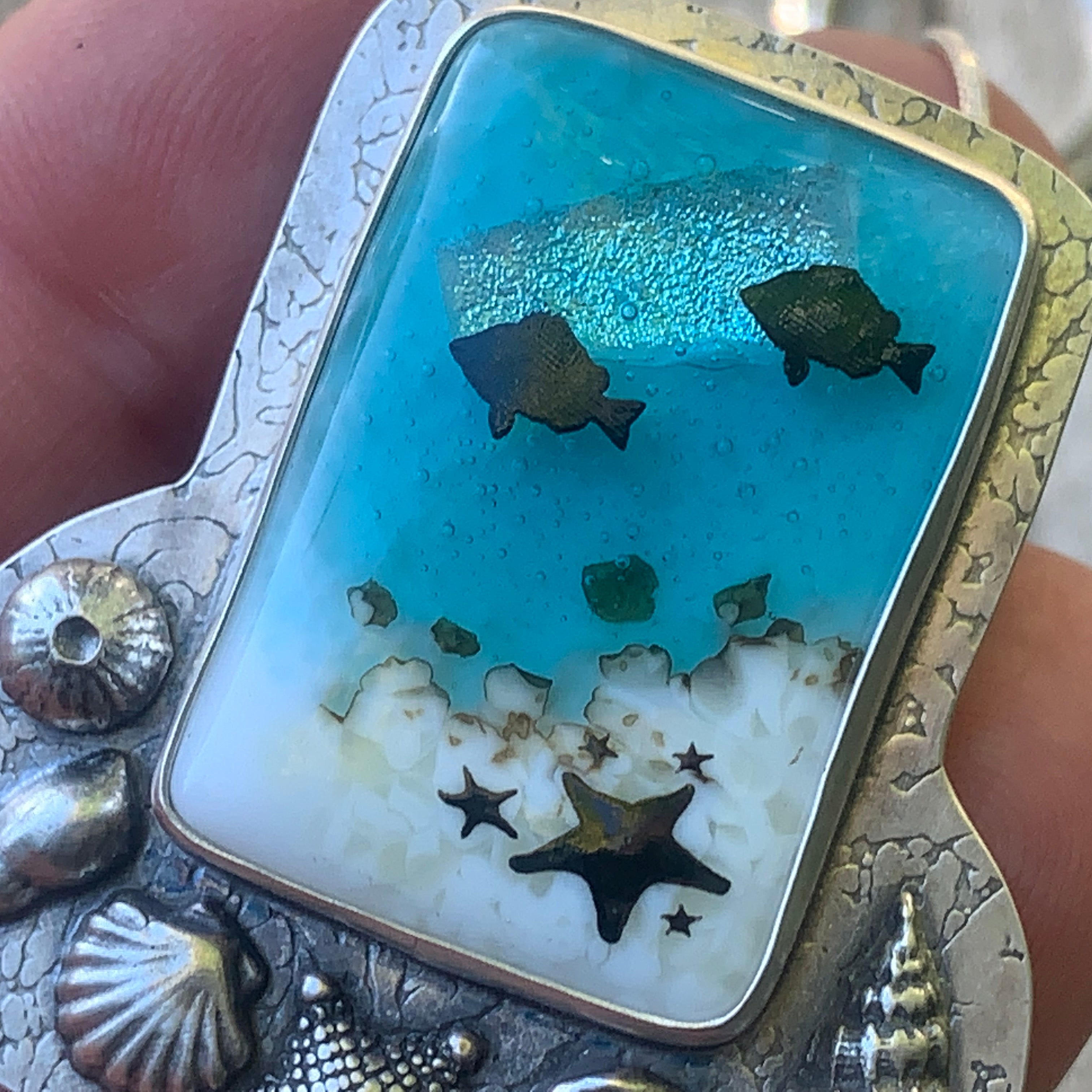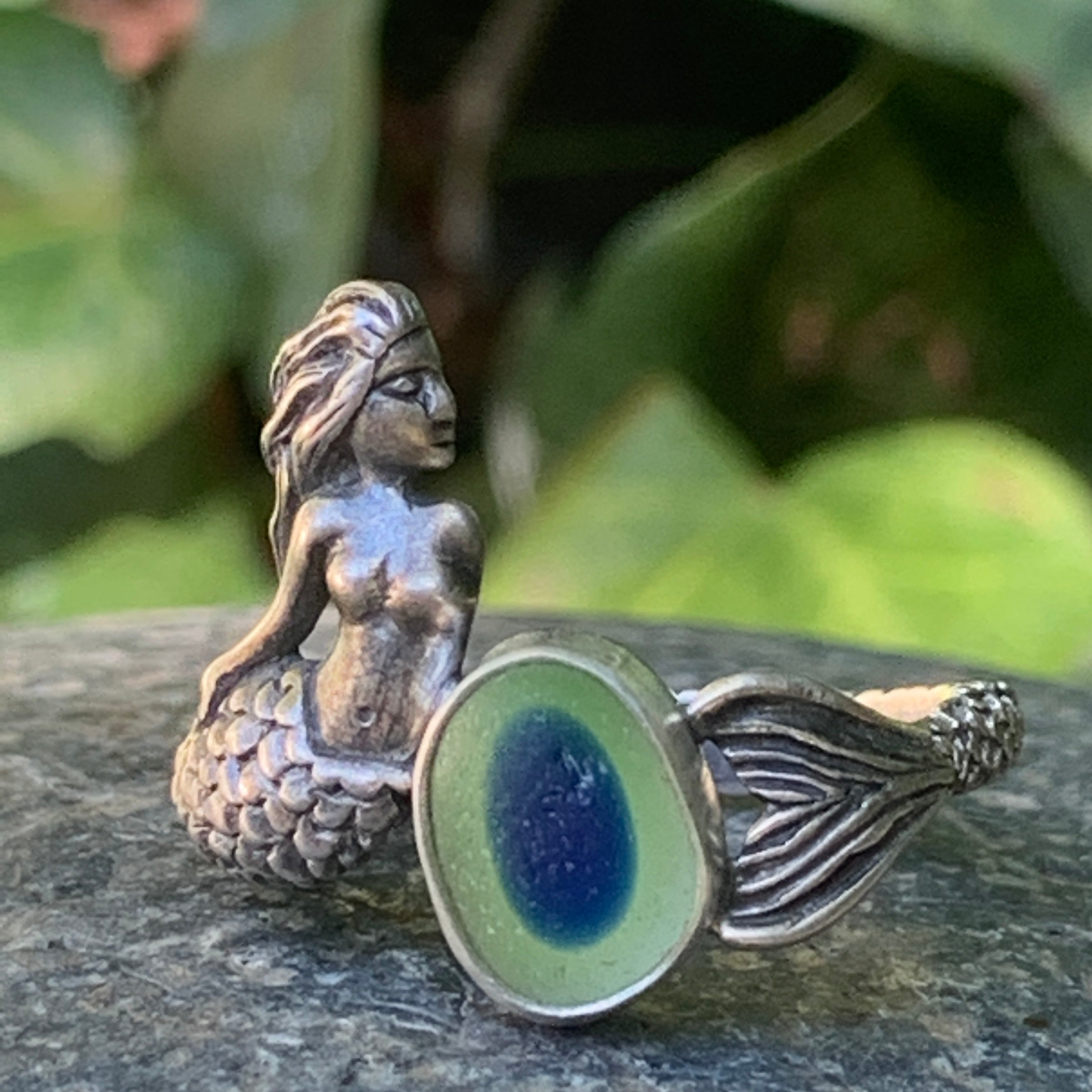 Yellow and Blue UV Davenport Mermaid Ring size 11.5